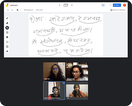 Progress Tracking at Kaladhwani is conducted on a quarterly basis. This is divided into 3 steps : Video Recording the performance; Reviewing Student Knowledge; Assessment between then and now. Progress Tracking is not looked at as a goal, but a positive progress of the learning journey of a child.