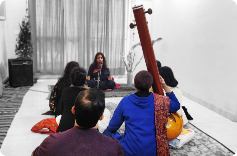 This batch is for students who would like to dive deep into the cultural ethos and history of the music. Students are trained for both Solo, and Group presentations. The student learns, identifies, explores and demonstrates the performative aspect.